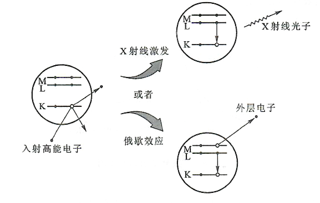 当原子内壳层出现空位,较外层电子跃迁至这个空位时,其多余的能量不一定通过发射X 射线释放,也可能将多余的能量通过库仑相互作用传给另一个外层电子,使其电离,这是一种非辐射退激发过程.