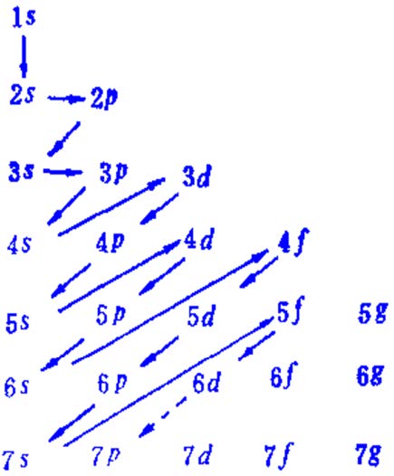 (3) (仅适用于同科电子)同一支壳层内,电子数小于等于闭合壳层容纳数的一半时,$J$ 值较小的能量较低,称为正序;电子数大于闭合壳层容纳数的一半时,$J$ 值较大的能量较低,称为倒序。