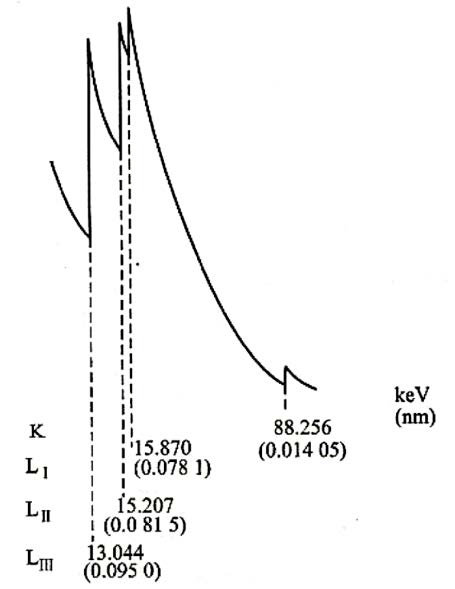 若是一个L 电子被电离,留下一个空位,填充电子来自M、N、O 等壳层,发出的 X 射线相应地称为 L𝛼、L𝛽、L𝛾,等线,依此类推.